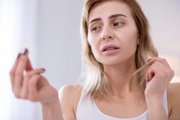 Когда волосы ослаблены, они не только выпадают, но и ломаются.